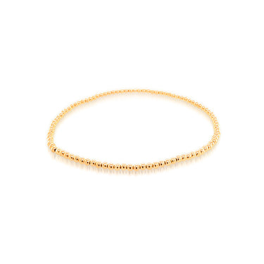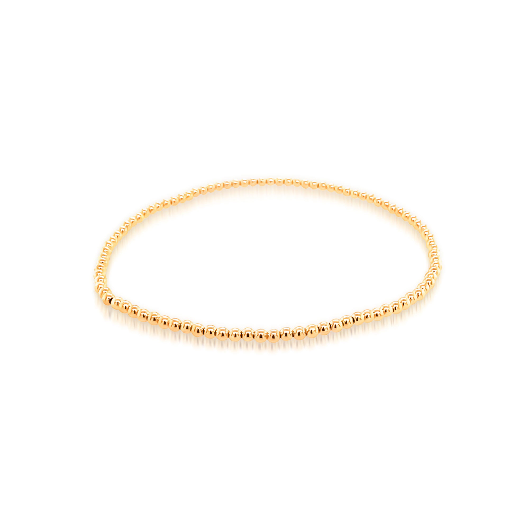 A simple, elegant stretch bracelet that is as effortless as it is versatile. Choose from four different sizes of 14k gold beads depending and use it as a standalone or accent piece. As one of our Stretch Bracelet Collection, this bracelet slides easily over your hand while maintaining their shape through years of daily wear.