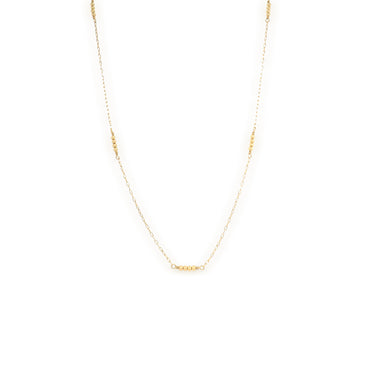 The Divine Choker is an elegant addition to any outfit. This piece is a thin chain with three sections of either freshwater pearls or gold beads. This piece is a part of our Elysian collection that embraces more refined and structured designs.